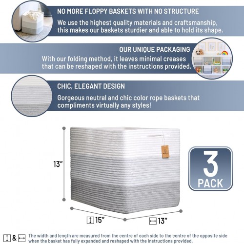 - No More Wrinkly Floppy Woven Baskets: Prepare to have your socks knocked off (and then neatly organized), when you take a peek at our woven rope basket set. No more ‘permanently’ creased up, floppy storage basket here. Thanks to our unique folding method and quality rope, shaping is easy with the instructions provided!