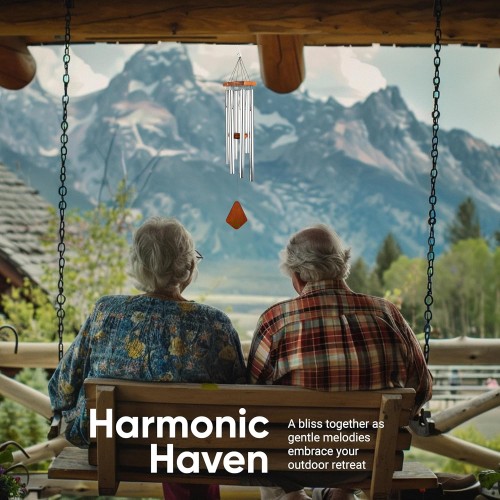 Nature’s Melody Premiere Grande Tunes Wind Chimes – Outdoor Windchime with 6 Tubes Tuned to E Pentatonic Scale, Rustproof Aluminum, Beech Wood & S Hook Hanger for Sympathy, Memorial Gift or Zen Garden