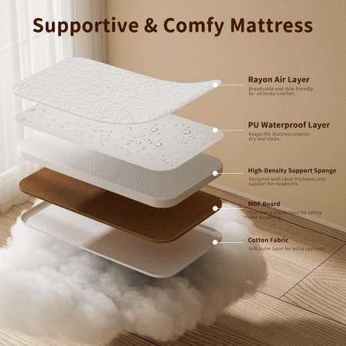 - 【Multi-Purpose Use】Functions as a standalone bassinet, a bedside crib, and a rocking bassinet, growing with your baby from newborn to infant.