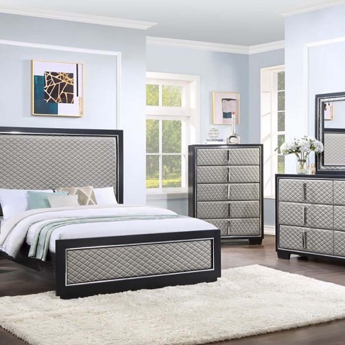 Nicola – Queen Bed – Silver Synthetic Leather & Black
