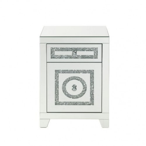 Noralie – 26″H Accent Table With Storage Drawers – Mirrored & Faux Diamonds