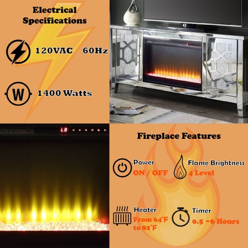 Noralie – 28″ TV Stand With Fireplace – Mirrored & Faux Diamonds