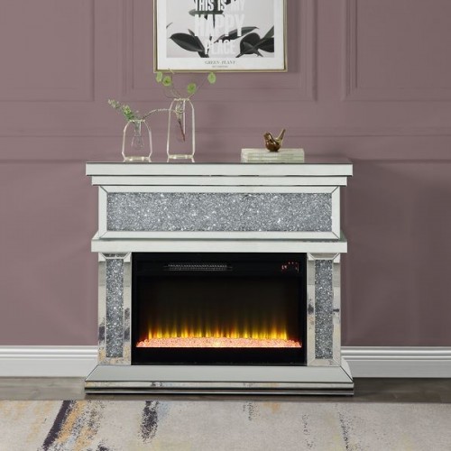 Noralie – 47″ Fireplace With Bluetooth – Mirrored & Faux Diamonds
