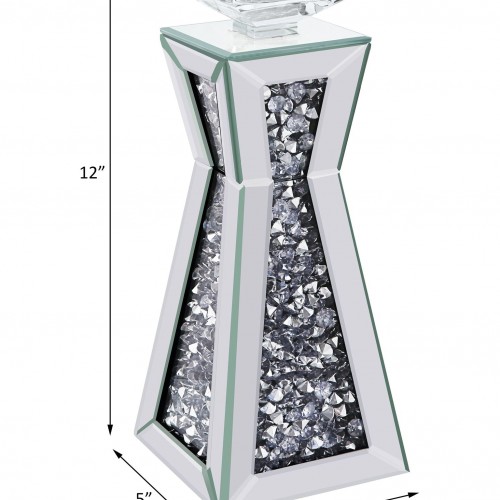 Strut your style with this beautiful and elegant Nowles candleholder collection. With a beautifully crafted mirrored frame and faux gem inlay, it is sure to compliment any arrangement. Available in two different sizes, light it up and be dazzled by the glamour of this piece.