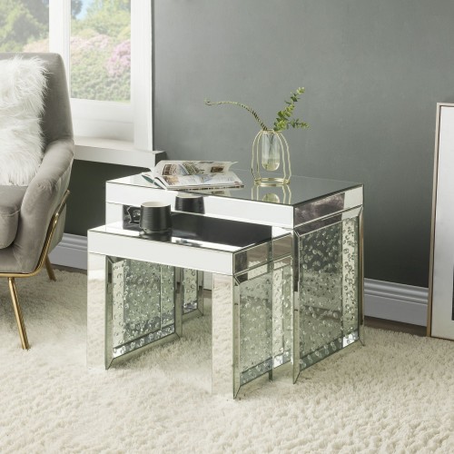 - Finish: Mirrored & Faux Crystals Inlay