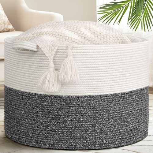 OIAHOMY Extra Large Blanket Basket, 95L Woven Storage Basket, Cotton Rope Toy Bin for Baby Room, Container for Storage in Living Room, 24”×17”×14”, Gradient Grey