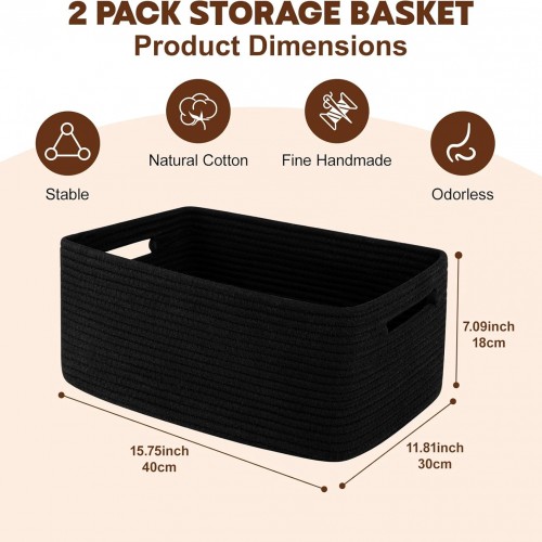 - Large Capacity:15.75*11.81*7.09inches. This 2-pack rectangular baskets for organizing is the perfect “treasure chest” for household essentials. Such as books, knick-knacks, wallets, keys, sunglasses, crafts, stationery, gadgets, towels,clothes, socks and so on. You can get it easily just by moving your fingers