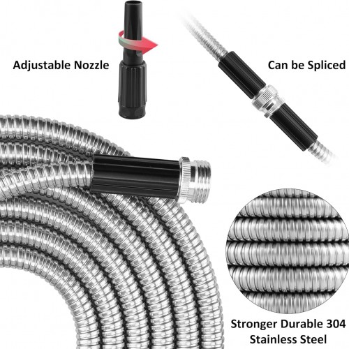- Lightweight and Portable: Made of stainless steel, our garden hose is durable and lightweight. Get rid of traditional hoses’ heaviness and wear. This metal hose reduces the strain on your hands, making it effortless to water plants or clean outdoor spaces