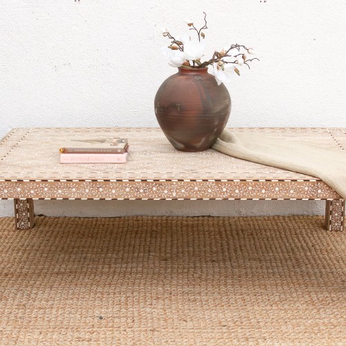 Add this inlay chest as stunning entryway piece for keys and mail. The inlay makes a strong first impression, while the raised stand keeps the hallway feeling open or use it as a sofa table, the 27″ height aligns perfectly with most modern sofa arms.