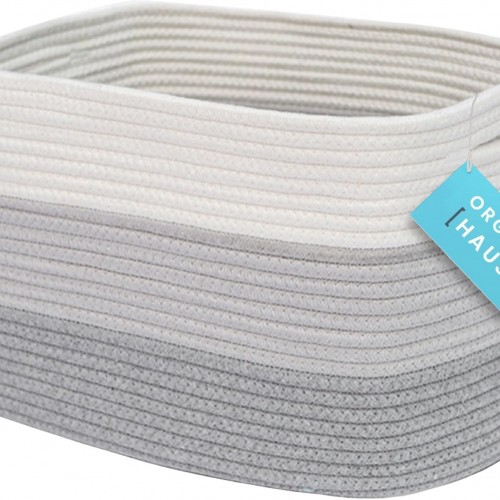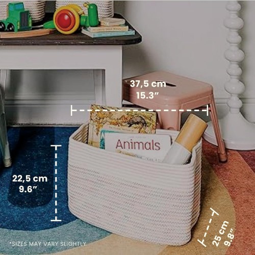 OrganiHaus Woven Storage Baskets for Organizing, Cotton Rope Organizer Bins for Shelves, Closet & Nursery, Dog Toy Basket, Decorative Bins for Toys, Towels & Books – 15x10x9, Rainbow Stitches