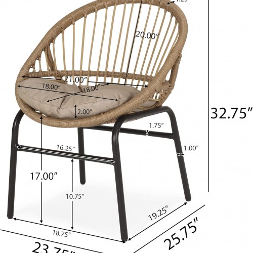 Outdoor Accent Chair With Curved Back And Basket Frame, (Set of 2) – Light Brown / Beige