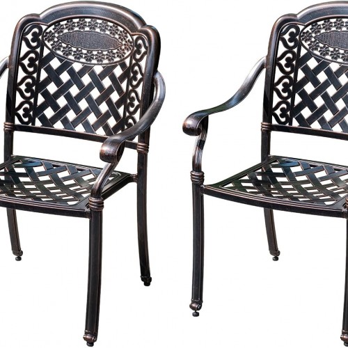Outdoor Dining Chair Cast Aluminum Patio Chairs Set of 2 All-Weather Patio Dining Chair with Adjustable Feet for Backyard Garden (Positive Lattice Landscape Chair)