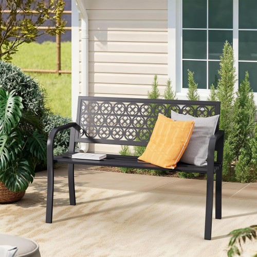 Outdoor Garden Bench with Waterproof Cover, Patio Park Lawn Solid Wood Bench with Cast Iron Frame, Patio Porch Furniture Bench with Backrest and Armrests for 2-3 People(Antique Bronze)