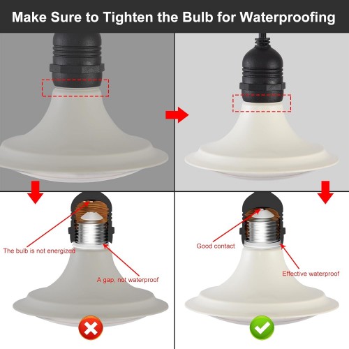 - 【Waterproof and Durable】Crafted from high-quality waterproof materials, UL-certified plugs, and power cords for safety. With IP65 waterproof rating, these lights are perfect for outdoor use. Three small holes in the bulb’s center release moisture, preventing internal damage.