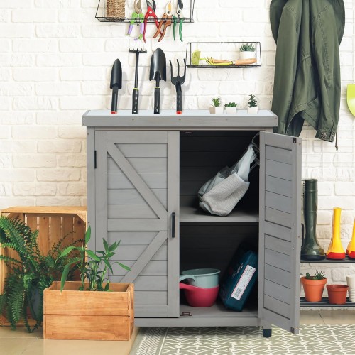 - Versatile Use: Ideal for use as a tool cabinet or a work table. Perfect for yards, patios, balconies, decks, porches, and garages, this versatile table complements various outdoor settings.