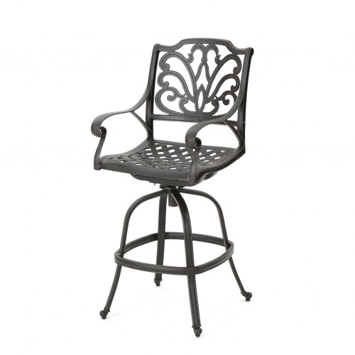 Outdoor Rattan Swivel Barstool With Water Resistant Cushion – Mixed Black / Dark Gray