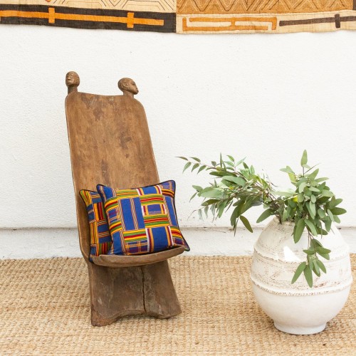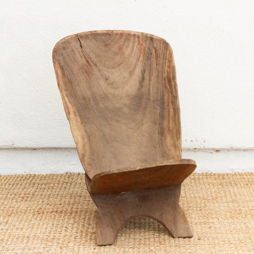 Experience the allure of West African craftsmanship with this unique hand-carved folding chair, often referred to as a “Star Gazer” due to its design that invites one to lean back and observe the world. This chair, a testament to traditional African artistry, features a striking crocodile motif, a symbol of strength and wisdom in many West African cultures. Its ingenious two-piece, interlocking design allows for easy transport and storage, making it perfect for creating stylish, casual seating arrangements both indoors and outdoors. Imagine these African chairs gracing your backyard patio, transforming it into a personal safari retreat, or adding a touch of exotic elegance to your living room. The rich, aged patina reflects the chair’s age and authentic character. These vintage “Star Gazer” chairs are ideal for those who appreciate unique, culturally significant furniture. Perfect for collectors and design enthusiasts seeking to add a touch of global flair.