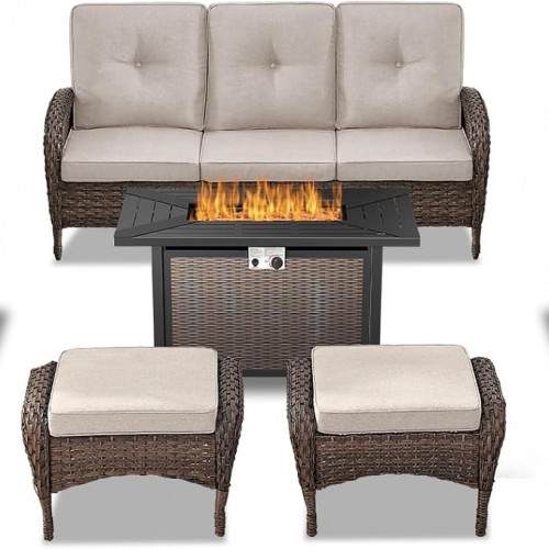 - 4.Embrace Warmth and Ambiance: Elevate your outdoor gatherings with the included propane fire table. Perfect for chilly nights, it adds a touch of warmth and ambiance to your outdoor space. Make lasting memories as you gather around, enjoying drinks and snacks in style and comfort.