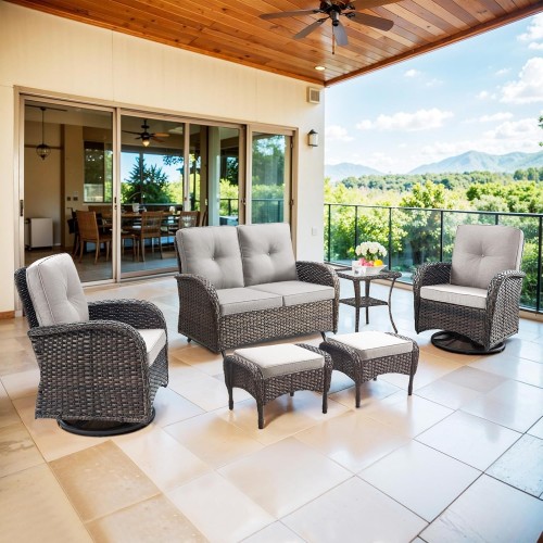 - 2.Serene Wicker Swivel Elegance: Soothe away stress in our unique wicker swivel rocker glider chairs that combine the relaxing benefits of glider with the soothing motion of 360 swivel. Designed for pure relaxation, these outdoor swivel rocker chairs elevate your outdoor comfort, adding a touch of luxury to your space.