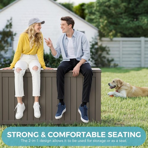 - 👍 Multifunctional Patio Storage Box with Seating & Delivery Use Not just for storage—this patio box doubles as a sturdy bench (supports up to 500 lbs) and works perfectly as an outdoor storage cabinet for receiving packages. It keeps deliveries safe from the elements and out of sight from porch pirates.