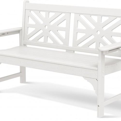 Oversized Outdoor Bench with Cup Holders, 51.5” HDPE Aesthetic Garden Bench for 2 Person, Memorial Benches – Easy Assembly & All Weather, for Porch & Patio, 800lbs Load Capacity (Black, 1pc)