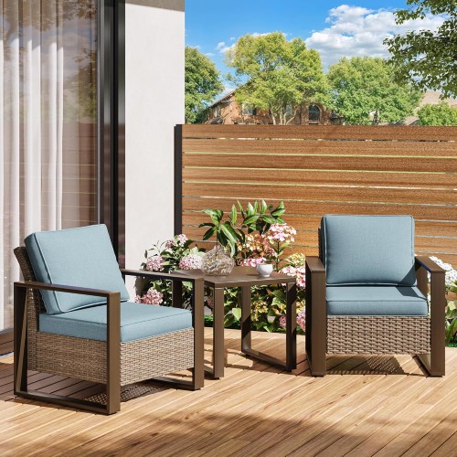 - All-weather Wicker Rattan: Our outdoor sofa sets have very durable wicker rattan for all-weather use and a natural texture with good coloring. The high-quality patio seating made of powder coated steel frame ensures good strength and stability.