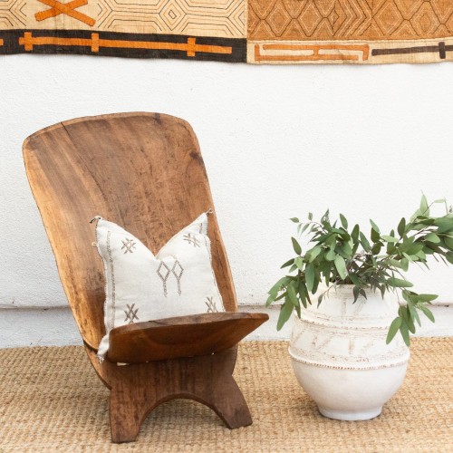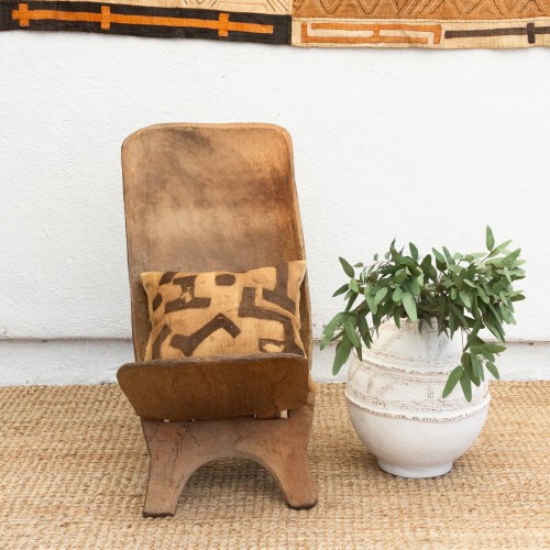 Experience the allure of West African craftsmanship with this unique hand-carved folding chair, often referred to as a “Star Gazer” due to its design that invites one to lean back and observe the world. This chair, a testament to traditional African artistry, features a striking crocodile motif, a symbol of strength and wisdom in many West African cultures. Its ingenious two-piece, interlocking design allows for easy transport and storage, making it perfect for creating stylish, casual seating arrangements both indoors and outdoors. Imagine these African chairs gracing your backyard patio, transforming it into a personal safari retreat, or adding a touch of exotic elegance to your living room. The rich, aged patina reflects the chair’s age and authentic character. These vintage “Star Gazer” chairs are ideal for those who appreciate unique, culturally significant furniture. Perfect for collectors and design enthusiasts seeking to add a touch of global flair.
