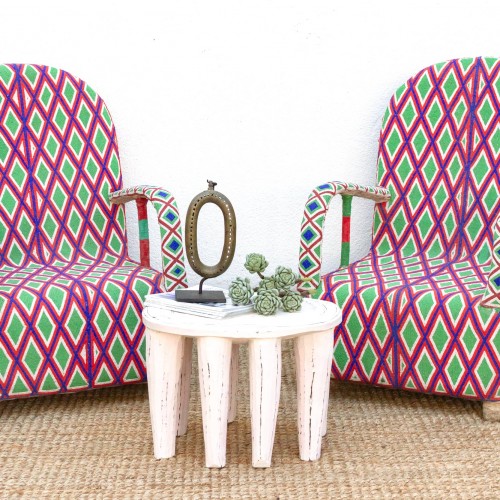 Embrace the wild majesty of these Yoruba beaded chairs, a testament to the rich artistic traditions of the Yoruba people. Set against a vibrant blue background, a menagerie of African animals—lions, elephants, crocodiles, rhinos, and birds—come to life in intricate beadwork, showcasing the Yoruba people’s deep connection to the natural world. With its comfortable rounded back and soft seat, this chair invites you to relax and appreciate the beauty and symbolism of its design. More than just a museum piece, this chair is ready to enhance your home as a striking accent chair in your living room, a conversation piece in your entryway, or a unique addition to your bedroom. Its vibrant colors and bold animal motifs will complement a variety of styles, including Boho Chic, Maximalist, Eclectic, and Modern, adding a touch of cultural richness and vibrant energy to your space.