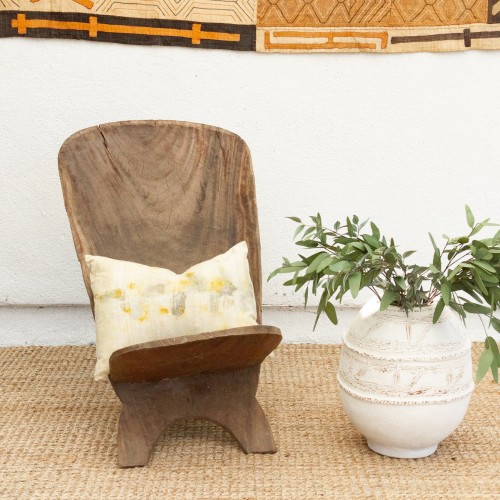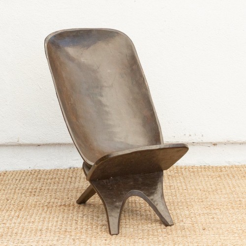 Experience the allure of West African craftsmanship with this unique hand-carved folding chair, often referred to as a “Star Gazer” due to its design that invites one to lean back and observe the world. This chair, a testament to traditional African artistry, features a striking crocodile motif, a symbol of strength and wisdom in many West African cultures. Its ingenious two-piece, interlocking design allows for easy transport and storage, making it perfect for creating stylish, casual seating arrangements both indoors and outdoors. Imagine these African chairs gracing your backyard patio, transforming it into a personal safari retreat, or adding a touch of exotic elegance to your living room. The rich, aged patina reflects the chair’s age and authentic character. These vintage “Star Gazer” chairs are ideal for those who appreciate unique, culturally significant furniture. Perfect for collectors and design enthusiasts seeking to add a touch of global flair.