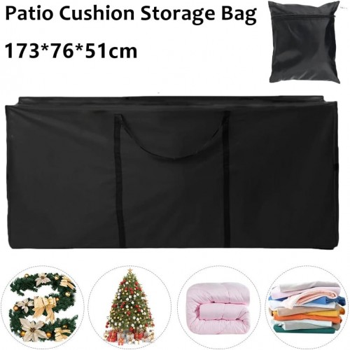 Patio Cushion Storage Bag 68 Inch Extra Large Waterproof Outdoor Pillow Storage Cover for Garden Furniture Cushions Protection Water Resistant, Black