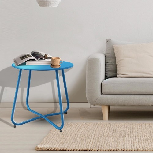 Patio Side Table, Round Metal Steel Weather Resistant Portable Patio Table, Outdoor and Indoor Patio Small Table for Garden Balcony Yard, Peacock Blue