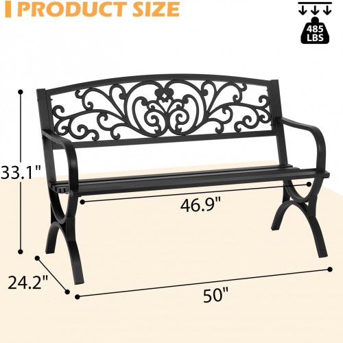 - Great Details : Every edge of the Garden Bench is meticulously finished, eliminating raw cuts or drips that could catch on clothing. Delicate patterns adorn the back of the park bench, and plastic spraying protects every part, minimizing the possibility of rust.
