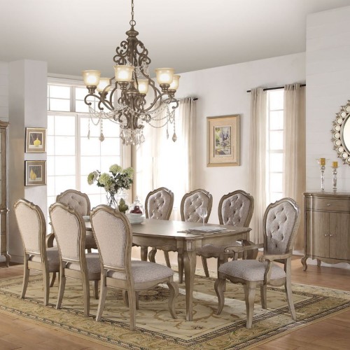 Inspire your home and create an upscale atmosphere with the Picardy dining room collection. This dining chair adds classic style to any sitting area featuring a traditional handcrafted design. Matching Queen Anne style chairs in beige floral and cherry faux leather with button tufting and nailhead trim and to the elegance of stunning set.
