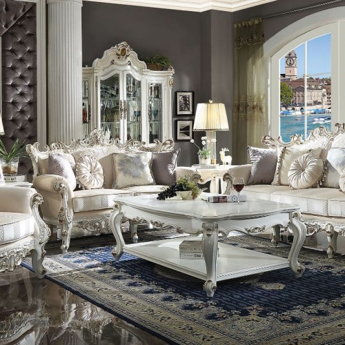 Inspire your home and create an upscale atmosphere with the Picardy II loveseat. This loveseat adds classic style to any sitting area featuring a traditional handcrafted design. This luxurious loveseat is upholstered in a beautiful light floral and patterned fabric and matching chairs with button tufted backs. Featuring a solid wood frame in antique pearl and gold brushed finish, this collection is guaranteed to be the highlight of any home.