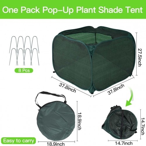 - Product size and packaging -Our Pop up sunshade cloth each size is 100x100x70cm / 39.3×39.3×27.5inch and weight each one only has 2.7lbs, it can be folded in 15.75inch carry bag very easy to portable. our small-sized sunshade net can be quickly opened and stored without the need for assembly.
