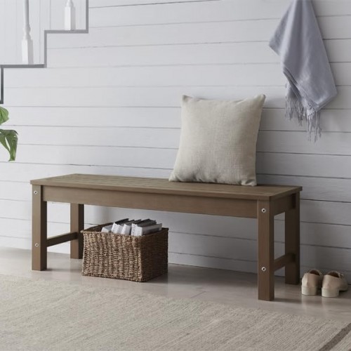 Psilvam Knight Bench Set of 2, Two Person Outdoor Poly Lumber Patio Backless Bench, Weatherproof Garden Bench That Never Rot and Fade, Suit for Church, School, Garden, Porch and Park (Brown)