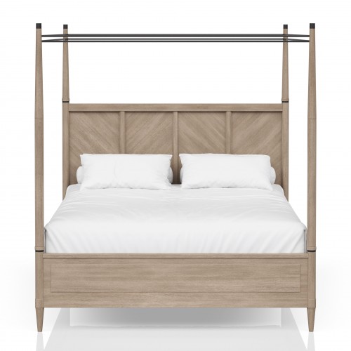 Queen Canopy Bedroom Set With A 2 Drawer Nightstand A Dresser With Poster Mirror And A Door Chest – Sand