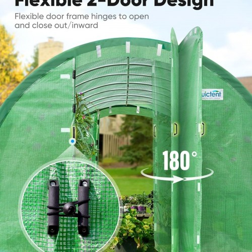 Quictent Premium Greenhouse Swing Door Large Walk-in Green Houses for Outdoors, Upgraded Tunnel Hoop House Frame and Cover for Outside Garden Plant, 2 Swing Door 10 Screen Window, 25x10x6.6 FT, Green