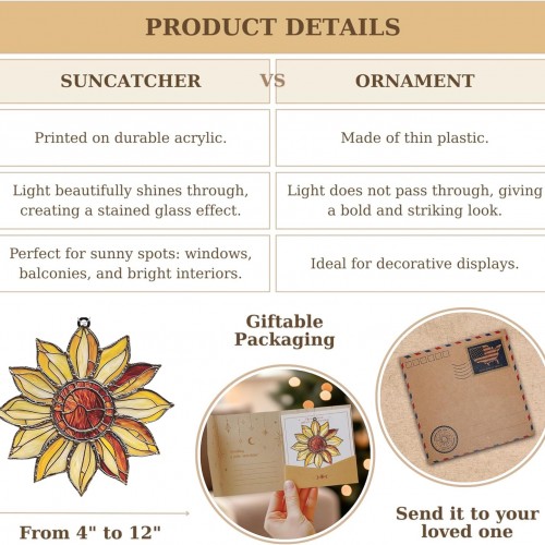Radiant Sunflower Acrylic Suncatcher Stained Glass Effect Window Car Hanging Christmas Ornament Indoor Outdoor Decor Garden Sun Catcher Panel for Sunflower Lover for Women Mom Grandma