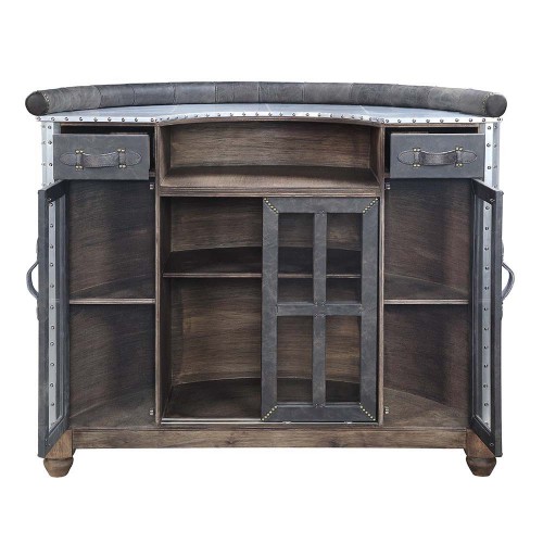 Everyone enjoys an open bar during gatherings, provide your guests with the ultimate party experience with the Rahma bar table. This bar table offers plenty of drawer storage space for all your bar accessories, while the shelving accommodates spirits, wines, and glassware. Its design is made from a blend of top grain leather and aluminum for a mixed-material look.