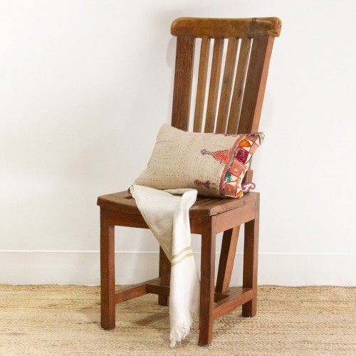 Introducing an attractive teak coffee table with turned legs, accented by remnants of antique architectural door lintels. This unique Indian table features a carved apron and side panels adorned with a decorative pattern of carving and original painted finish. This reclaimed teak coffee table is a perfect blend of a practical piece and history for your living room or sitting area.