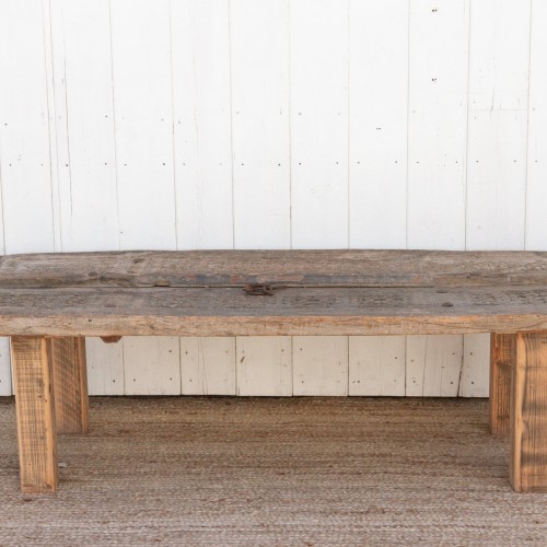A rare architectural gem, this 18th century pair of doors was found in the Swat Valley and it now makes a wonderful one of a kind coffee table. This antique door coffee table stand on 4 rustic reclaimed wood square legs allowing the door itself to be the main feature. The doors feature a finely carved floral motif on both ends and still preserve their original decorative nail heads and oxidized gray patina. Please note, these doors were exposed to the elements and have warped and cracked over the years.