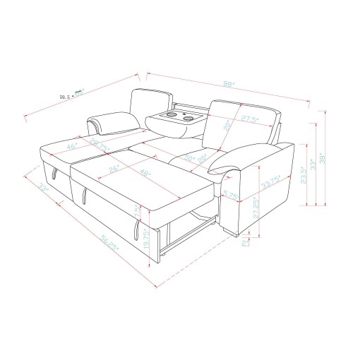 88.0″W x 60.0″D x 38.0″H – 238.7 lb