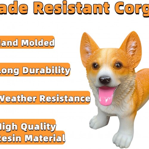 Resin Corgi Statue – Hand Painted & Fade Resistance & Weatherproof- Long Durability for Indoor and Outdoor – Garden Ornament