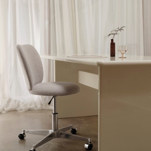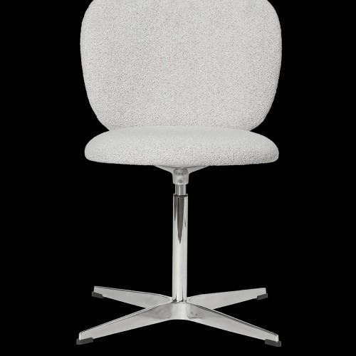 The Rico Collection welcomes curves and volumes into a classic design defined by soft lines and an embracing expression. Guided by an ever-present sense of contrast, the Rico Chair with Castors juxtaposes the refinement of chrome against the timeless yet comfortable warmth of soft bouclé upholstery. This versatile chair features castor wheels for easy mobility and an integrated pump for effortless adjustability. Its subtly understated backrest enhances the minimalist aesthetic, providing a refined and cosy feel.