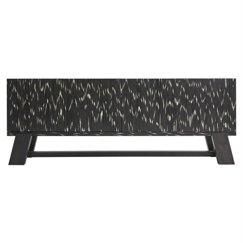 A stunningly artistic contrast finish in black and white draws all eyes to this entertainment credenza