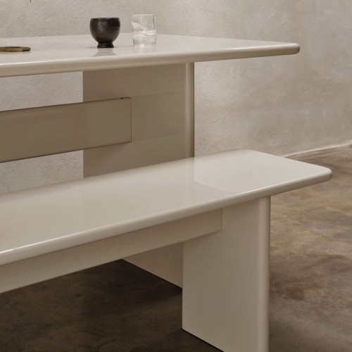 Add a touch of refinement to your home with the elegant Rink Bench. Extending the Rink Series, the bench is carefully fashioned from FSC™ certified MDF and finished with a vibrant, high-gloss lacquer. Its design features a classic table silhouette with smooth, rounded edges for a contemporary expression. The Rink Bench offers exceptional versatility, whether styled in the hallway or positioned at the foot of a bed.