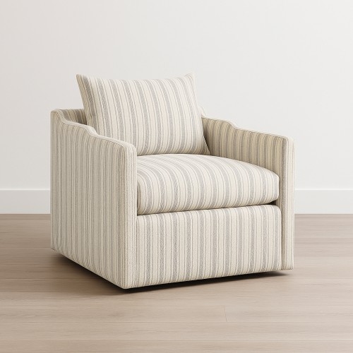 A sleek take on contemporary techniques, the Roosevelt Swivel Lounge Chair is a clean and minimal elevation of beach house design. Upholstered in gifford script linen fabric, and with a polyurethane foam and feather-fill back and seat, this armchair is as handsome as it is comfortable.