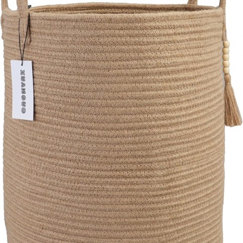 - Tall storage basket with handles: This cute tall round rope basket is designed with long and sturdy handles, making it easy to move around. As the clothes storage basket is made of soft cotton rope, it has no sharp edges and will not scratch your furniture or floor.