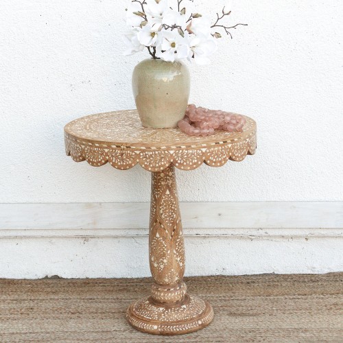 Add this mirror to your powder room, this is the ideal scale for a single vanity mirror. It adds instant texture to a tiled bathroom. Or hang this carved mirror above a small console table to check your reflection before leaving. The carved frame acts as art, so you don’t need much else on the wall.